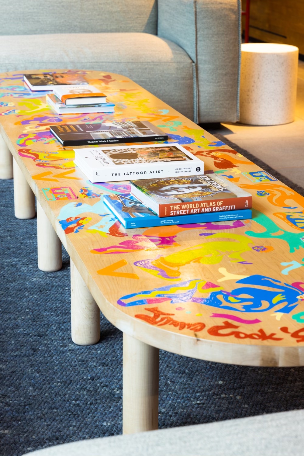 The 10’-6’ custom wooden coffee table for the SNKRS team was a commission through the Open Studio Collective.